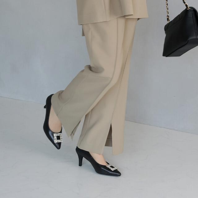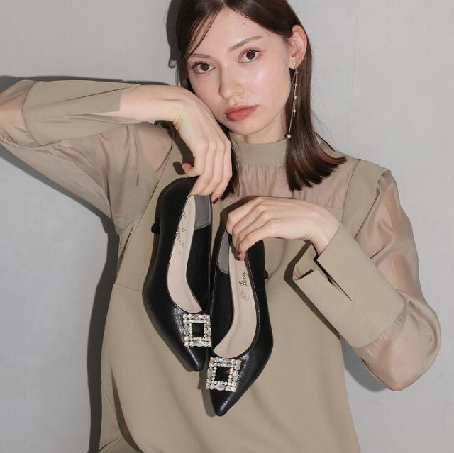 ラグジュアリー感漂うビジューバックルとメタリック素材でエレガントな足元を演出!
