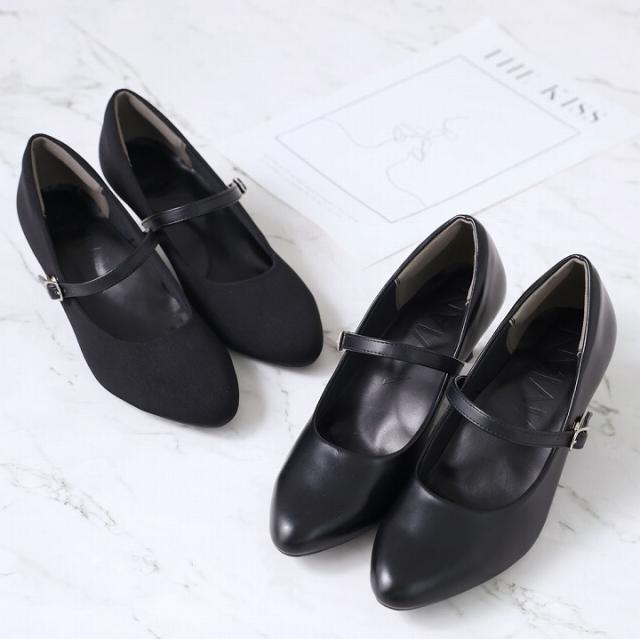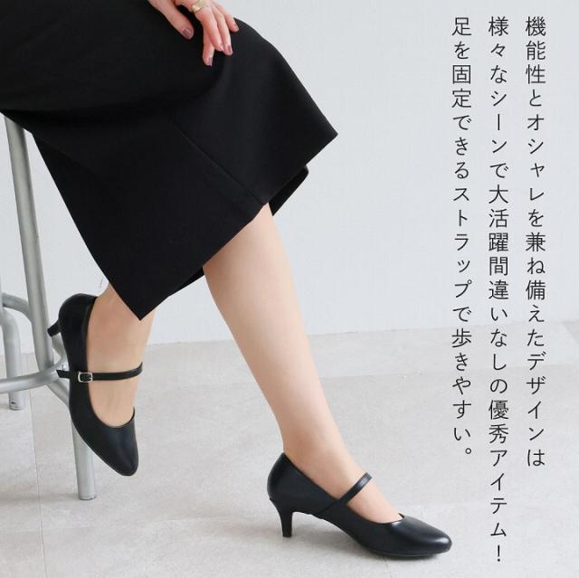 アーモンドトゥストラップ5cmヒール感激パンプス