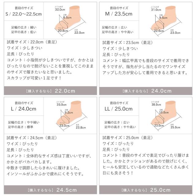 | サイズ (対応サイズ) | 長さ | ワイズ | 幅 | ヒール高さ |