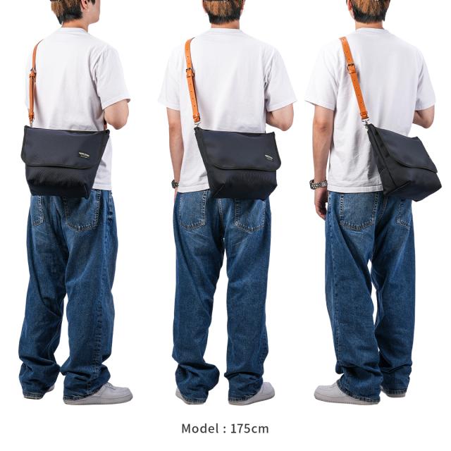 | ワンダーバゲージから当店オリジナル仕様のタウンユースメッセンジャーバッグが登場。 本体素材には高強度かつ高い撥水性を誇るコーデュラバリスティックPVCを採用。 無地ながらも奥行きのある表情と、さりげないロゴパッチがポイントです。 形状はオーソドックスなメッセンジャーの形を踏襲しつつ、やや縦型寄りの形状に調整。 スペースが正方形に近い形で確保されるため見た目以上の収納力を実現しています。 開閉フラップもマジックテープなどではなく、カシメタイプのマグネットでの開閉を採用。 メッセンジャーでよく発生してしまう洋服を巻き込んでしまうなどのトラブルを防止します。 さらにショルダーベルトはポリ素材などではなく厚口ヌメ革を採用。 カジュアルでありながら、どこかビジネスライクなワンダーバゲージらしい気品も感じさせる一品です。 |