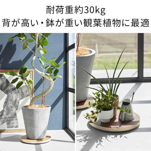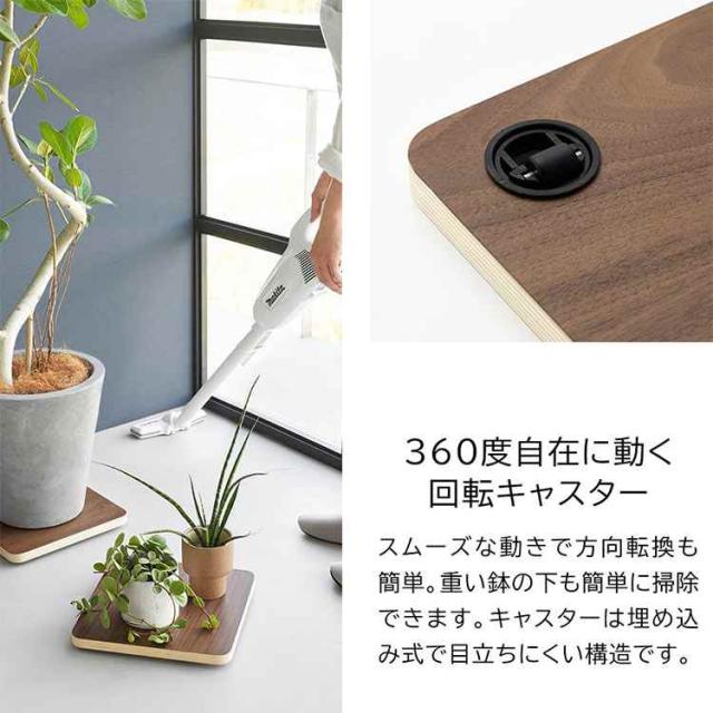 インテリアに馴染む木製のスタイリッシュなラウンド型とスクエア型の台車です。重い鉢植えもスムーズに移動できるので、掃除の際もラクラク。キャスターは360度回転し、目立ちにくい構造で見た目もスマートです。