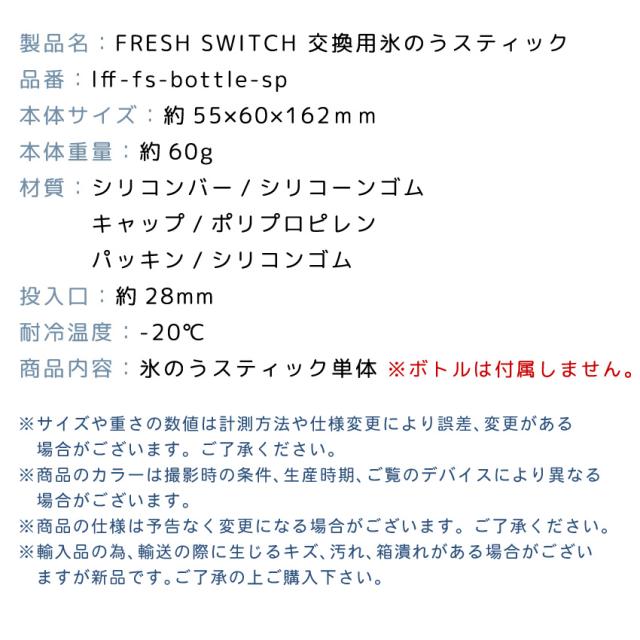 氷嚢スティック スペア FRESH SWITCH 携帯氷嚢 氷嚢 氷のう 携帯氷のう シリコン アイスクールスティック 水筒型 冷やす 大人 子ども 冷感 ひんやり 冷却 ネッククーラー 持ち運び 持ち歩き 熱中症 暑さ対策 熱中症対策グッズ 冷感グッズ 首 冷やす アイシング 野球 スポーツ