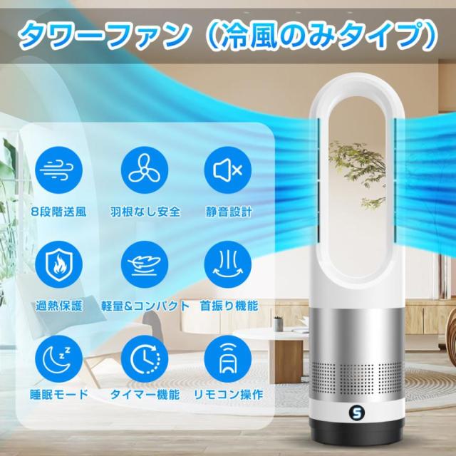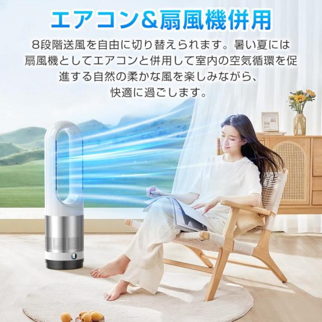 キーワード:冷風扇 扇風機 冷風機 羽根なし タワーファン 冷暖両用 空気循環 電気ヒーター 大風量 8段階冷風/3段階暖風 首振り 省エネ 熱中症対策 節電対策 お手入れ簡単 省スペース 組み立て不要 リモコン付 部屋 リビング