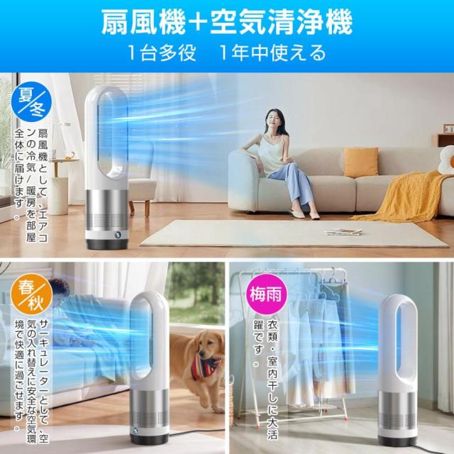 【一年中使えるタワーファン・3段階暖風・8段階冷風】最新型羽なしの冷暖兼用タワーファン、自動首振り機能が付き、3段階暖風・8段階送風、四季折々の快適な室内環境を作り、お好みの暖かさに自由に調節できます。一年中に大活躍です。