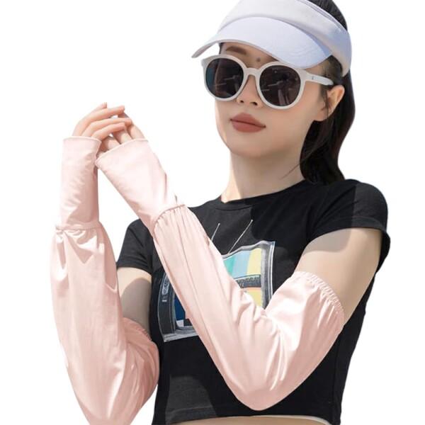 (MEPOKI) アームカバー レディース 夏 UV腕カバーアームスリーブ さらっとした着用感 腕や手を日焼けから守る アームウォーマー シンプルなデザイン (ピンク)