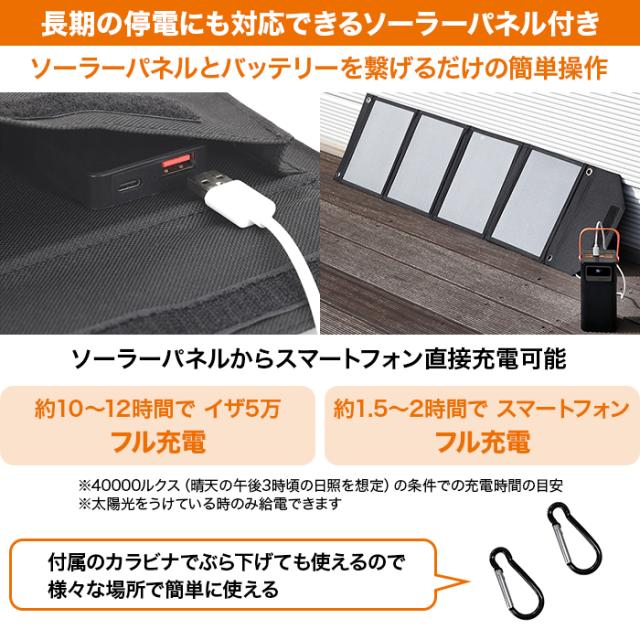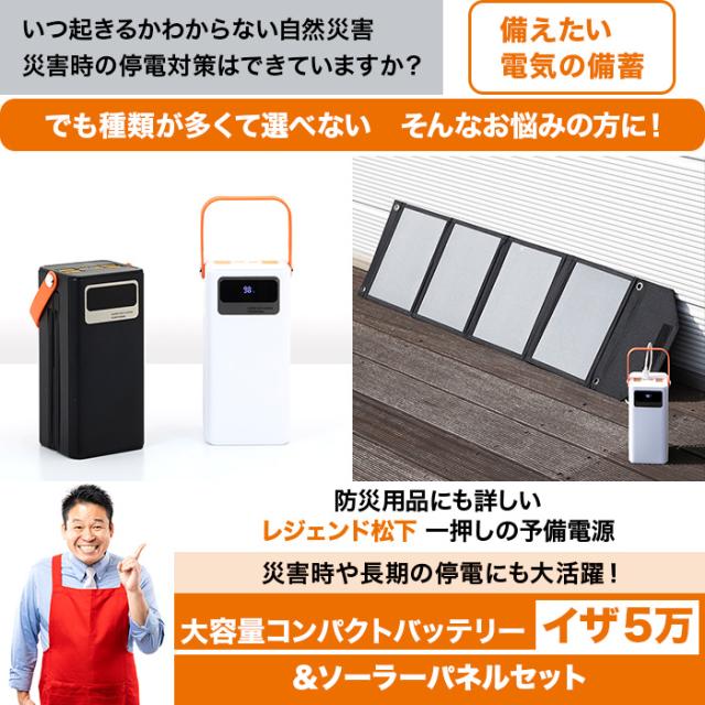 大容量コンパクトバッテリーイザ5万&ソーラーパネルセット