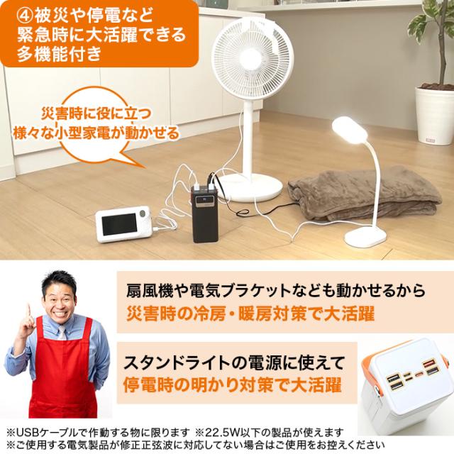扇風機や電気ブラケットなども動かせるから災害時の冷房・暖房対策で大活躍。