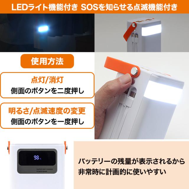 充電ケーブルが内蔵されているから災害時や緊急時に充電ケーブルを忘れてもスマートフォンが充電できる。