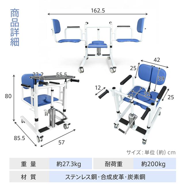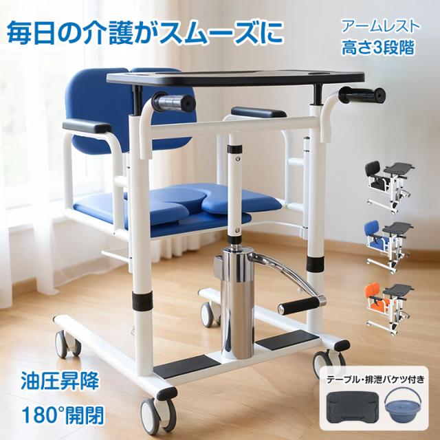 多機能介助チェア 移乗リフト 介助椅子 油圧式 昇降 介護 敬老の日 介助 移乗 車いす 車イス 移動 食事 排泄 クッション テーブル 便器 バケツ付き 静音 耐荷重200kg ストッパー ステンレス 非課税 nc002