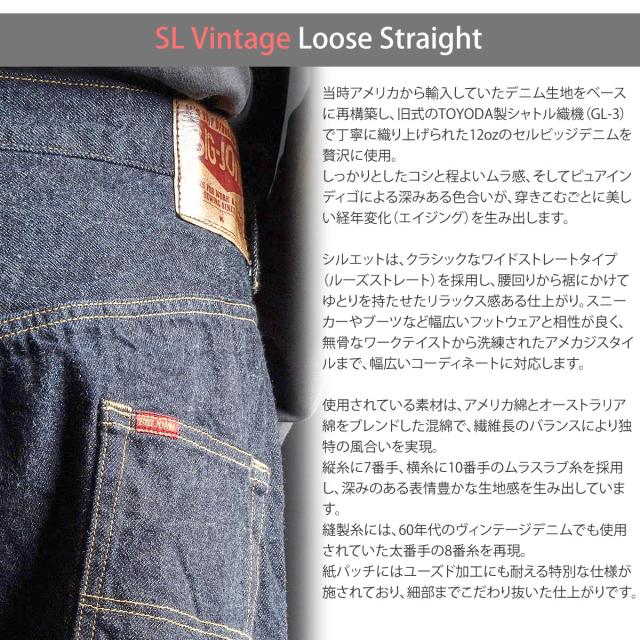 1960年代にBIG JOHN(ビッグジョン)が手がけた伝統的なジーンズの風合いや履き心地を現代に甦らせた一本が、この「M101SLB SL VINTAGE LOOSE STRAIGHT」です。