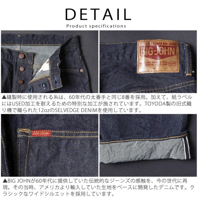 【 60年代デニムを再現 】ジーンズ ビッグジョン ワンウォッシュ SL ヴィンテージ 60s ルーズ ストレート デニムパンツ アメリカ綿 × オーストラリア綿 BIG JOHN SL VINTAGE 60s Loose Straight ( M101SLB (001) ) 12オンス セルビッジ セルビッチ メンズ 日本製 アーベン