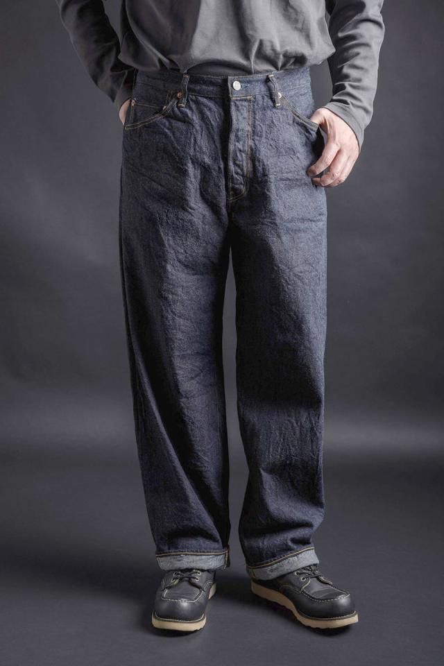 シルエットは、クラシックなワイドストレートタイプ(ルーズストレート)を採用し、腰回りから裾にかけてゆとりを持たせたリラックス感ある仕上がり。スニーカーやブーツなど幅広いフットウェアと相性が良く、無骨なワークテイストから洗練されたアメカジスタイルまで、幅広いコーディネートに対応します。