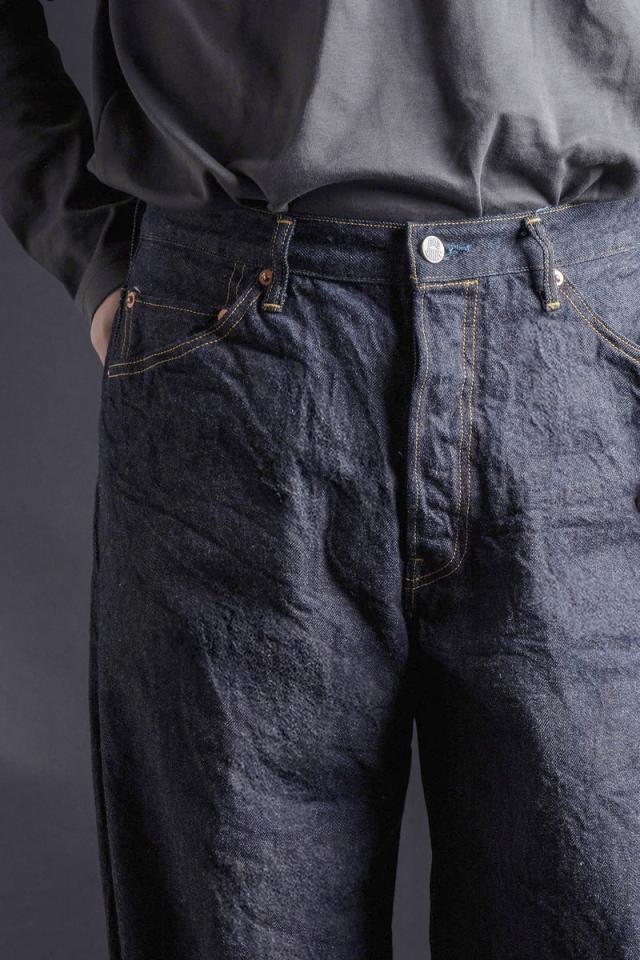 しっかりとしたコシと程よいムラ感、そしてピュアインディゴによる深みある色合いが、穿きこむごとに美しい経年変化(エイジング)を生み出します。