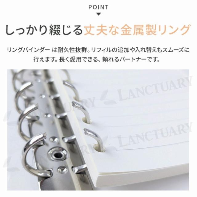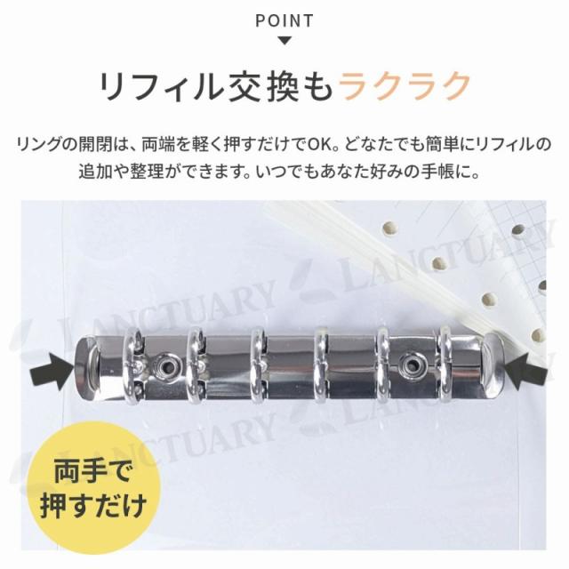 リング部分には丈夫な金属製6穴リングを採用しており、リフィルの交換も容易に行えます。