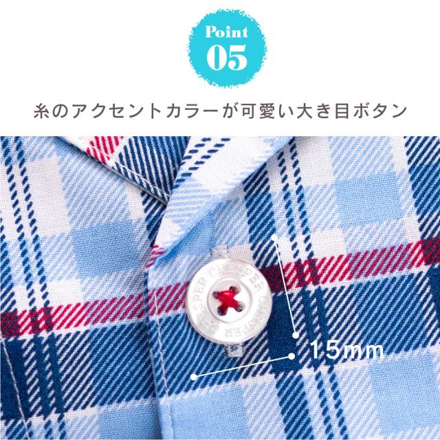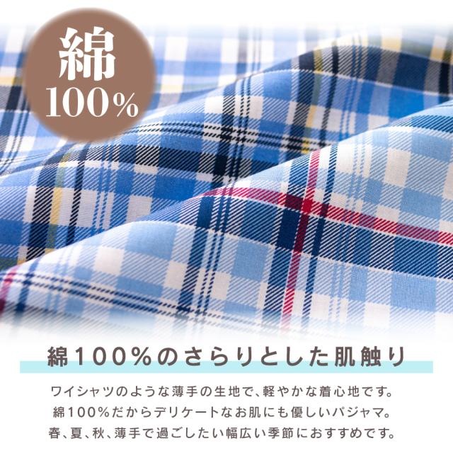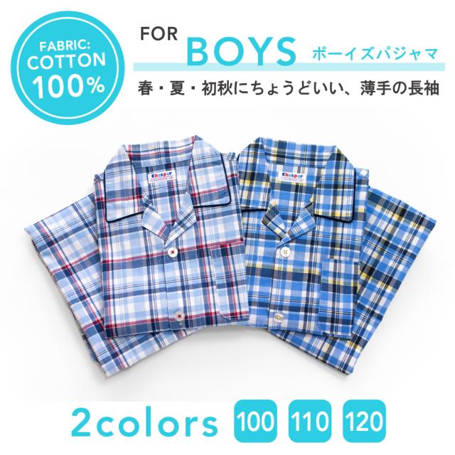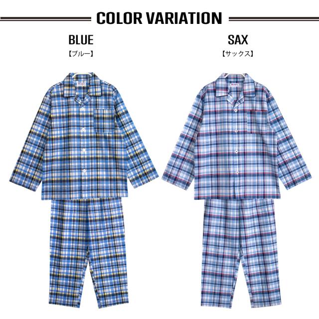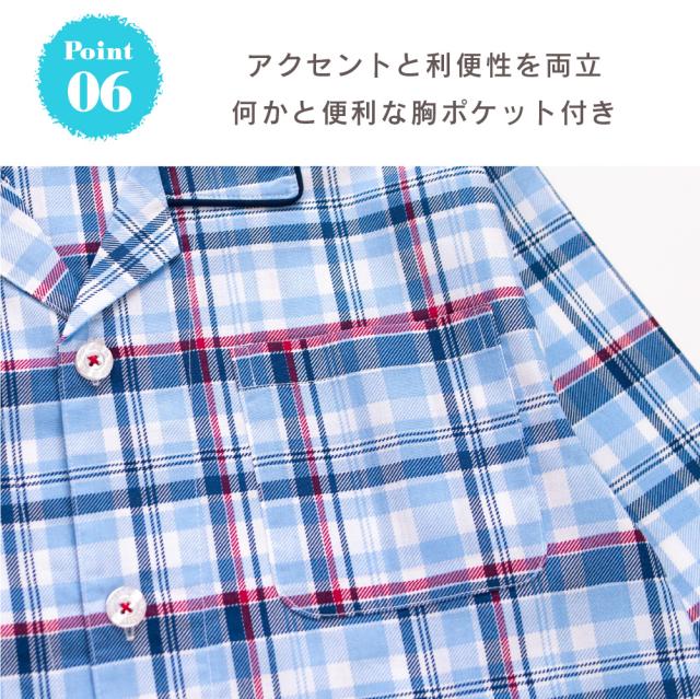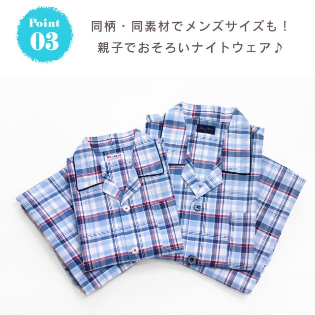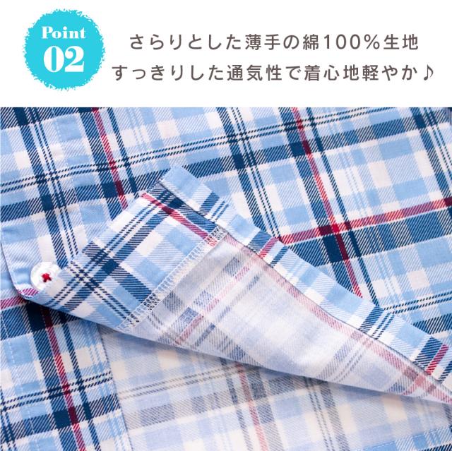 パジャマ キッズ 男の子 綿100% 長袖 春 夏 初秋 前開き チェック柄 薄手のシャツ ブルー サックス 100 110 120子供 ジュニア ボーイズ おそろい メール便なら 送料無料