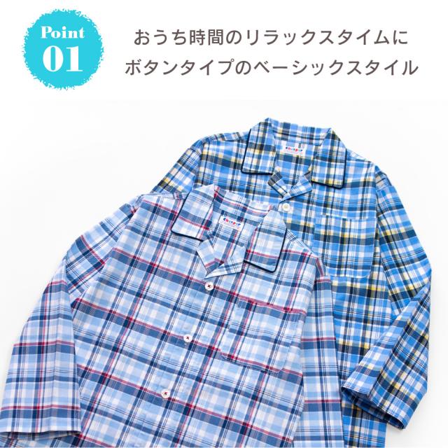 爽やかで明るいチェックが素敵なチェック柄のパジャマです。