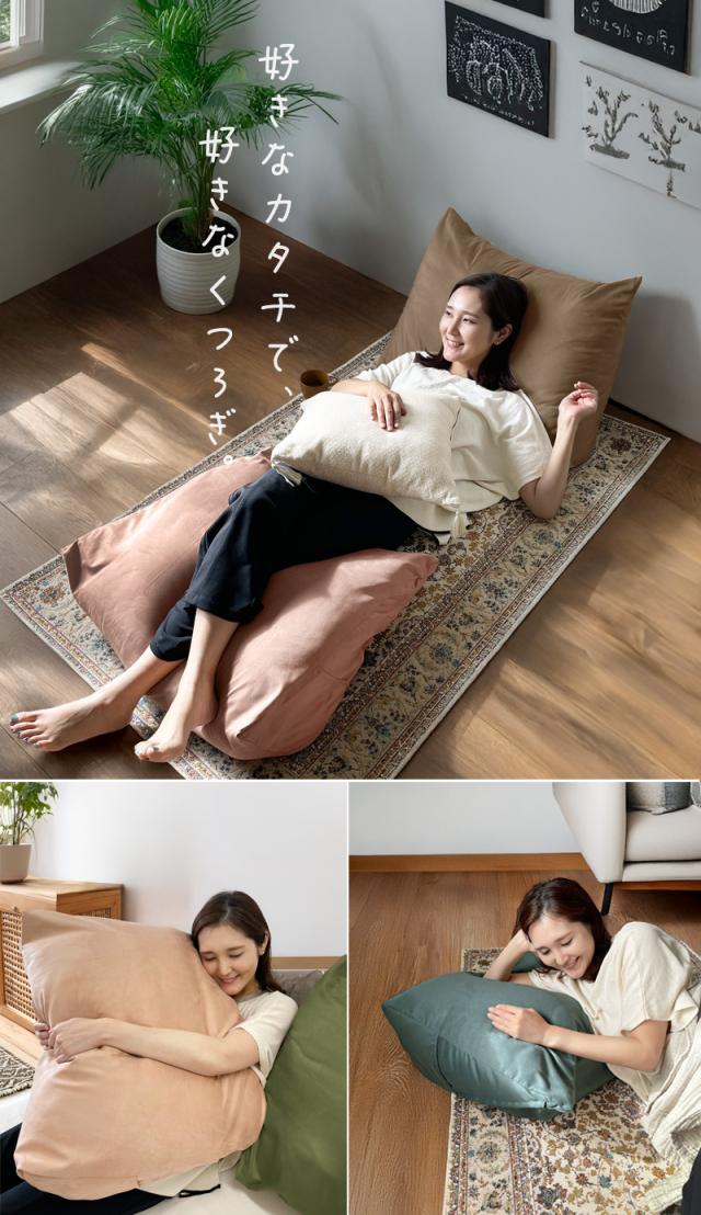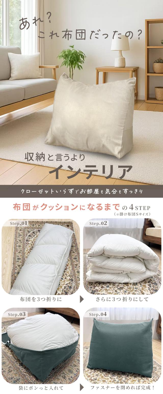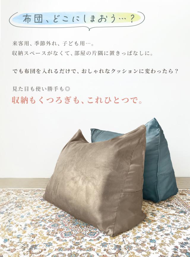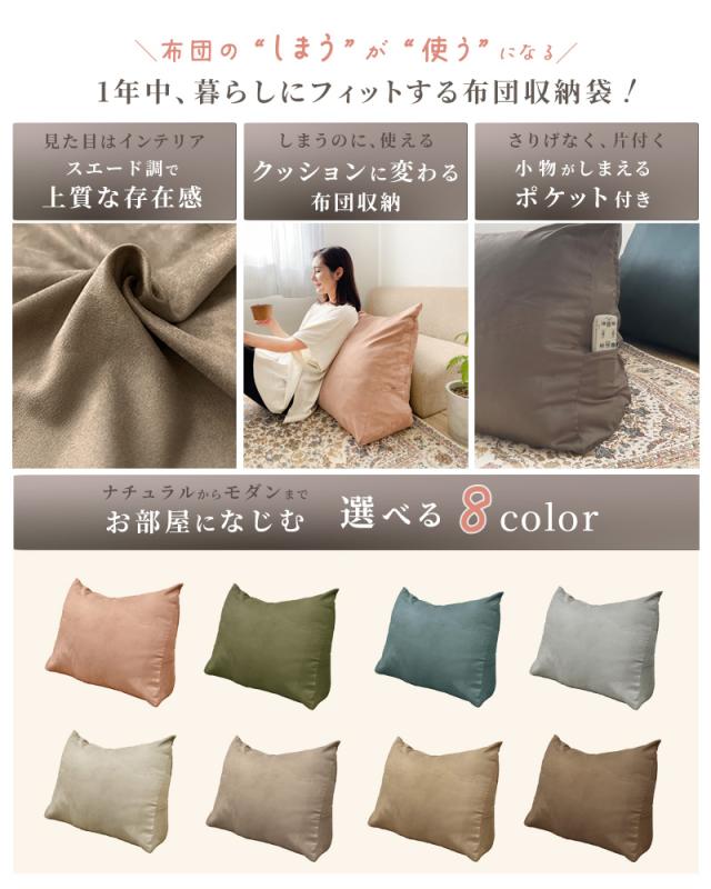 布団収納袋 クッションになる 大きめ 特大 立てられる 洗える 背もたれ 抱き枕 スエード調 圧縮不要 整理整頓 コンパクト収納 子ども部屋 ベージュ グレージュ ブルー カーキ ピンクベージュ アイボリー ライトグレー ブラウン