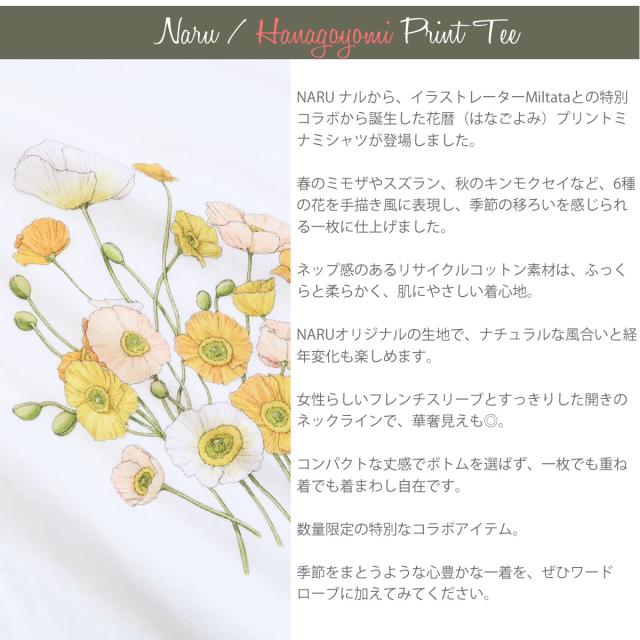 NARU ナル Miltata コラボ 花暦 はなごよみ プリントミナミシャツフレンチスリーブ 半袖 Tシャツ ( 663005 ) 花柄Tシャツ 南出メリヤス 大人可愛い おしゃれ四季の花 やわらか素材 日本製 イラストレーター クルーネック アーベン 普段使い 実用的