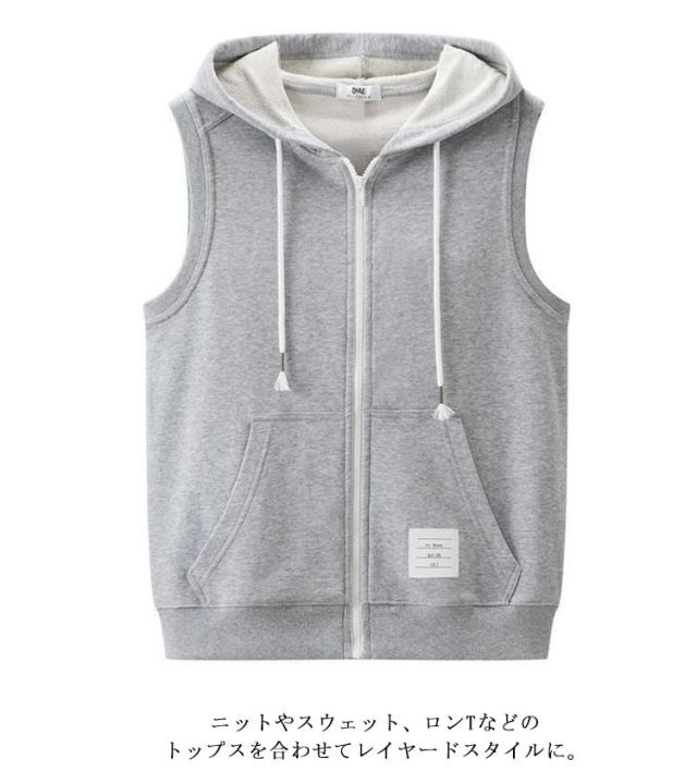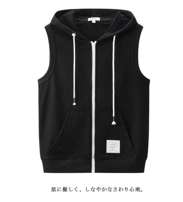 ノースリーブ 前開きベスト スウェットベスト パーカーベスト スウェットベスト フード付き メンズ レイヤード ジップアップ カジュアル ゆったり アウター 重ね着 ポケット付き お洒落 大人 トップス 大きいサイズ 男性用ベスト