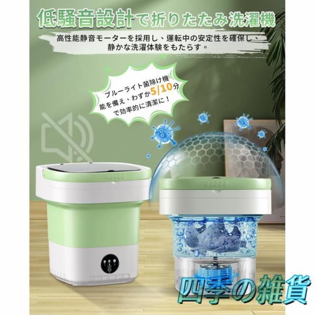 青色光滅菌 全自動洗濯 コンパクト 折り畳み 高性能 消臭 肌着 ベビー服 タオル アパート 自宅 旅行 グリーン