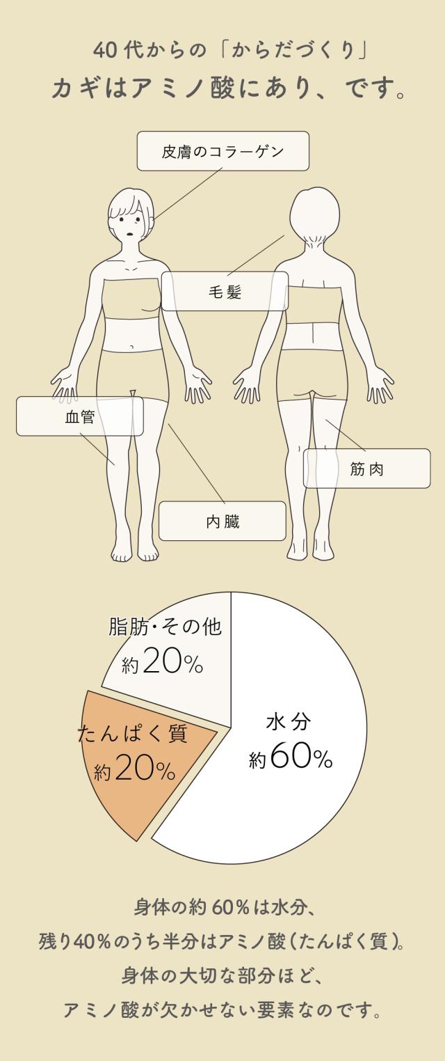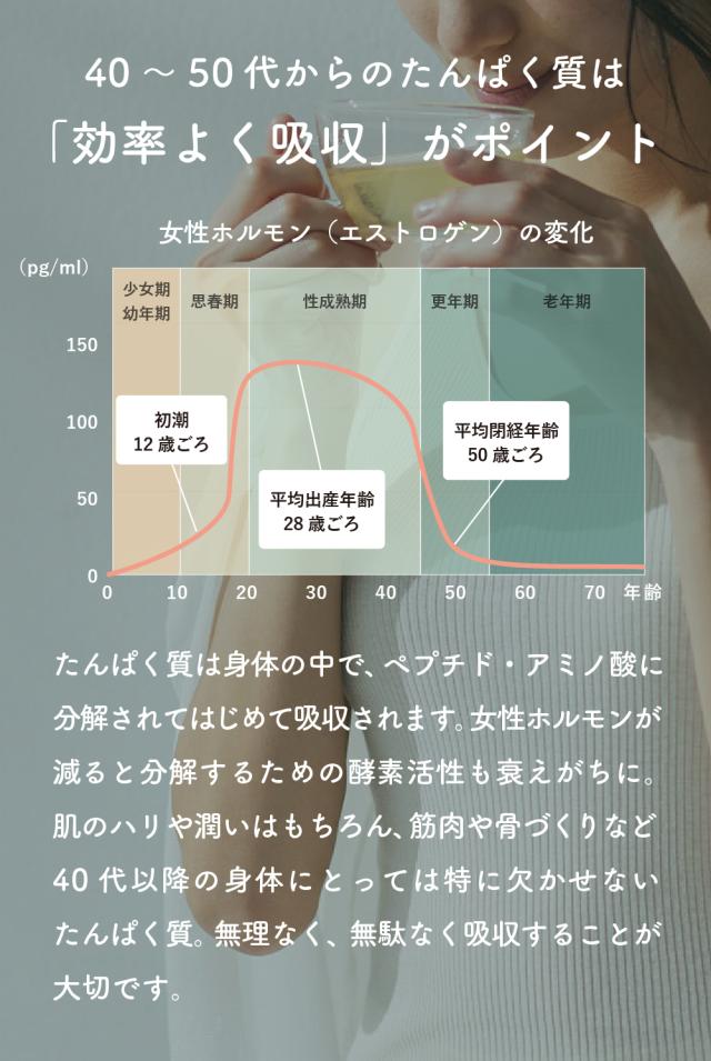 だから、たんぱく質が大事。 40〜50代前後から訪れる、「いつのまにか」の変化。「女性にとっては年をとるとよくあること」と思われている変化の多くに、実はたんぱく質が関わっています。