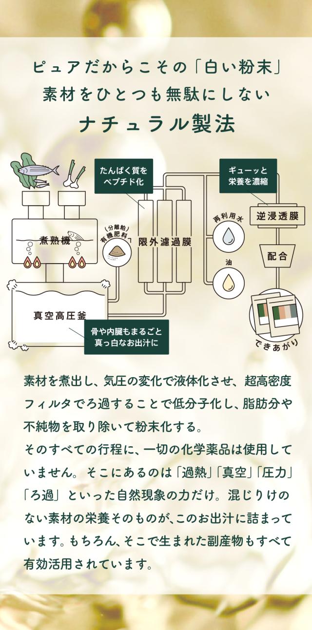 素材のペプチド・アミノ酸を直接飲み干す。 ハリのある潤った美しさや健康な身体。
