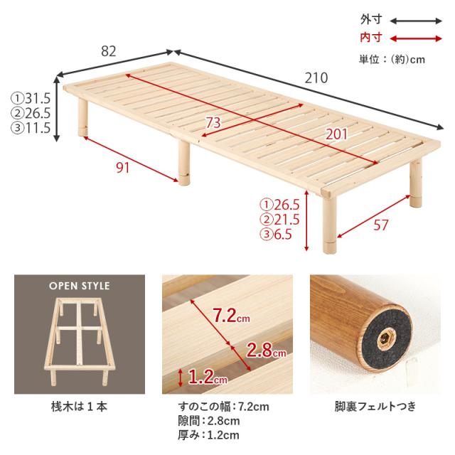 ベッド セミシングル 安い すのこベッド ベッドフレーム 頑丈 セミシングルベッド 収納 ベッド下収納 おしゃれ 木製 ベット SS プレーン ベッド シングル おしゃれ ナチュラル 木製