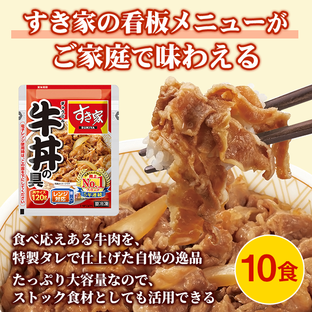 【ポイント増量中】 送料込み すき家 牛丼の具 120g×10食 牛丼 冷凍 惣菜 冷凍食品 すきや 10パック おつまみ