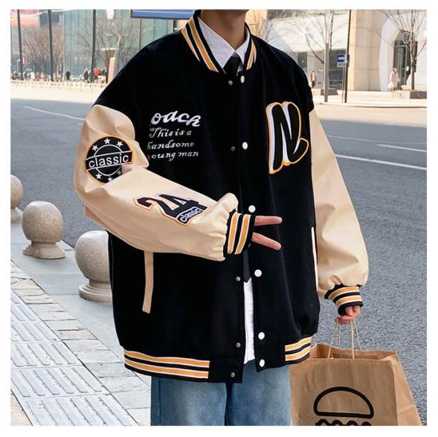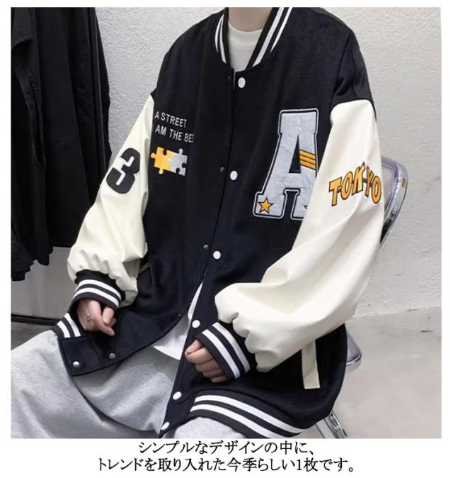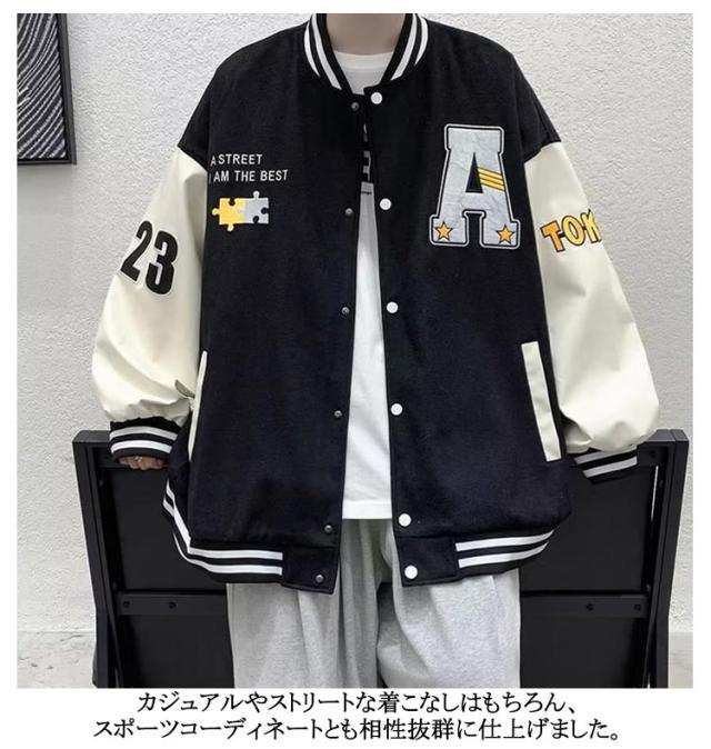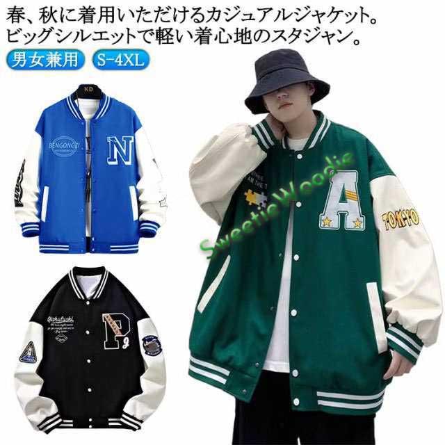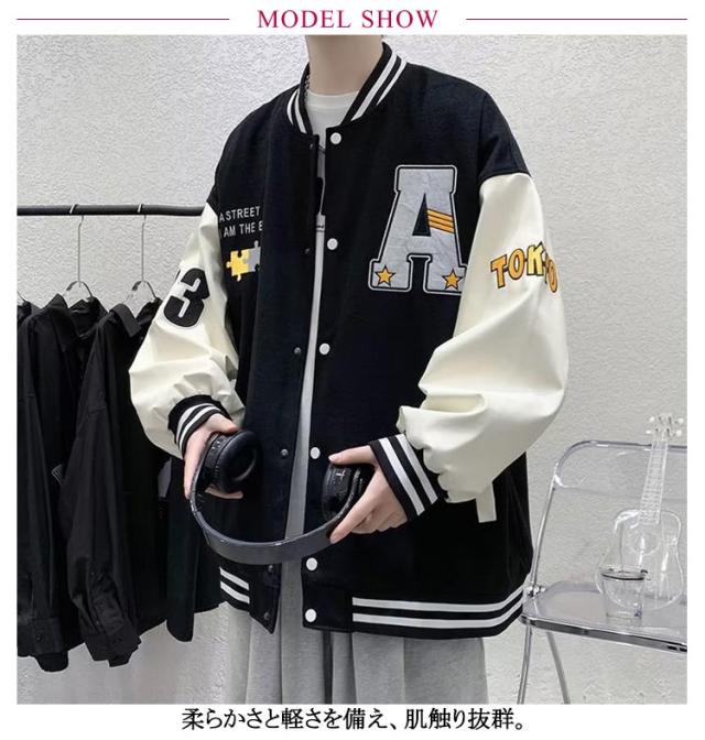 スタジャン スタジアムジャンパー メンズ レディース ジャケット スタジアムジャケット ブルゾン 長袖 アウター ジャンパー オーバーサイズ ビッグシルエット 切替 配色 野球服 ゆったり カジュアル 春秋 ストリート アメカジ 男女兼用 ペアルック おしゃれ 通勤 通学