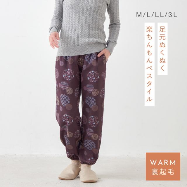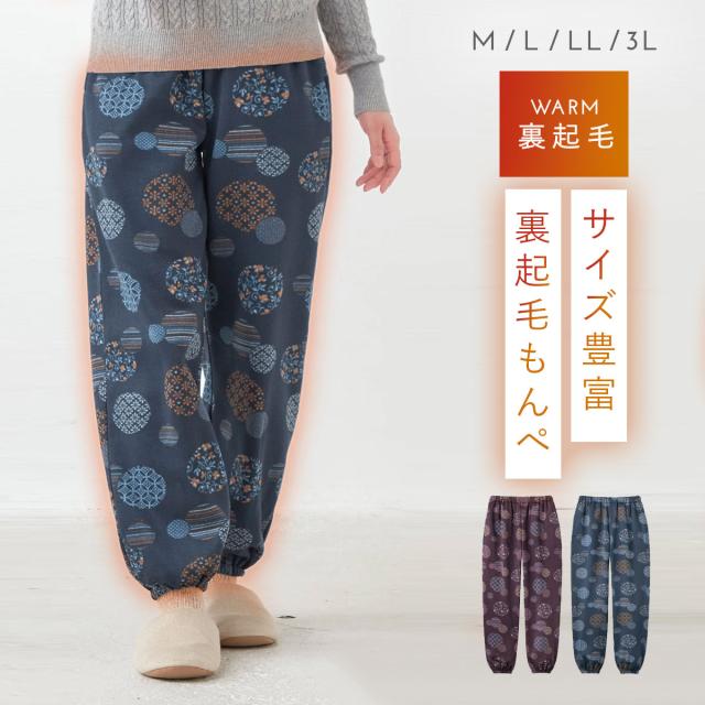 もんぺパンツ レディース もんぺ 和柄 パンツ 裏起毛 モンペパンツ 和風 和柄 太もも ゆったり和柄くつろぎもんぺ 50代 60代 70代 M L LL 3L 大きいサイズ ゆったり