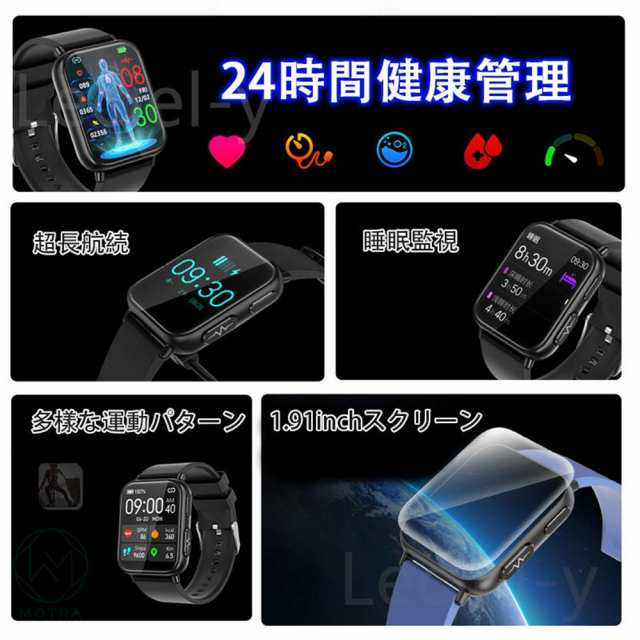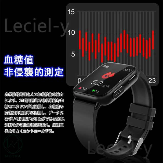 2025最新 スマートウォッチ 日本製 血糖値 心電図 血中酸素 血圧測定 心拍 IP68防水 1.91インチ 大画面 着信通知 Bluetooth通話 歩数計 24時間体温