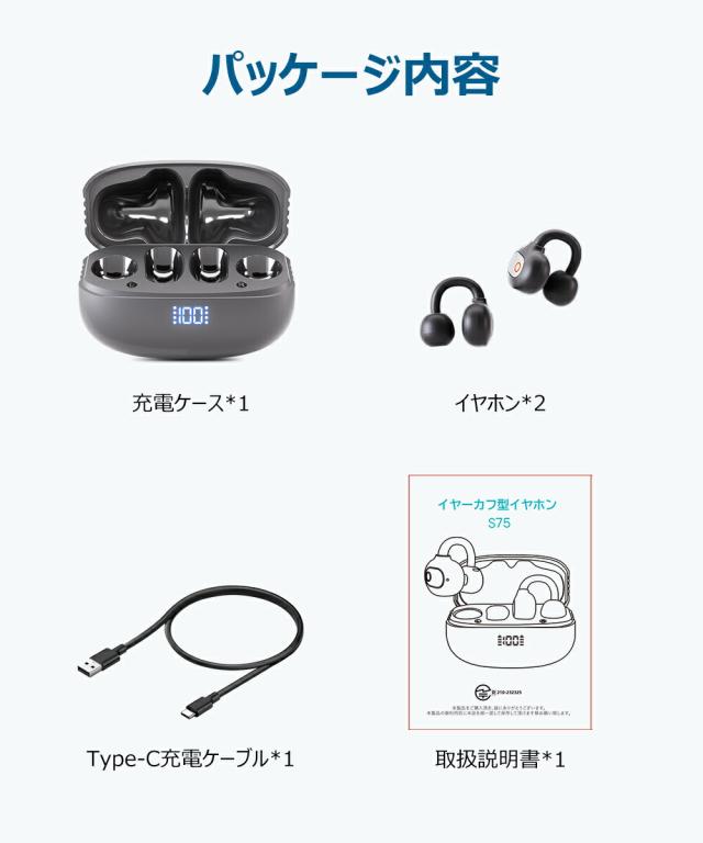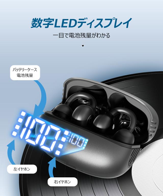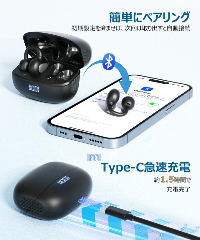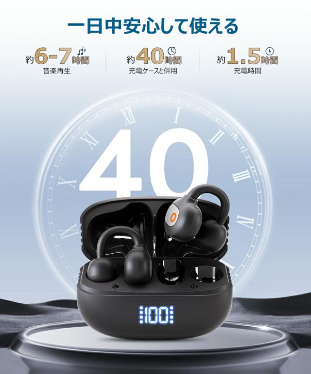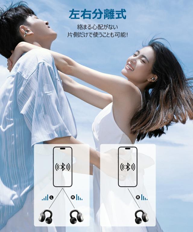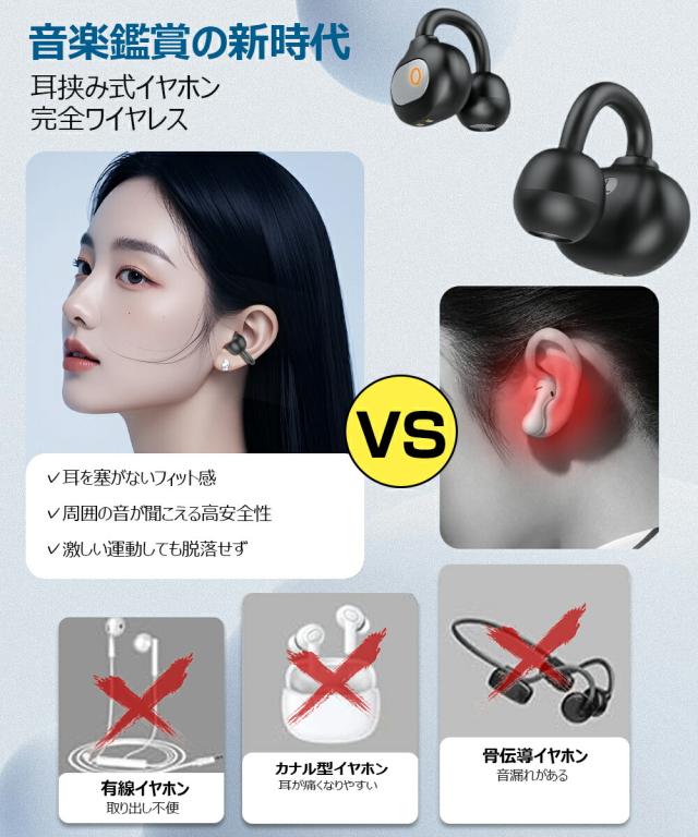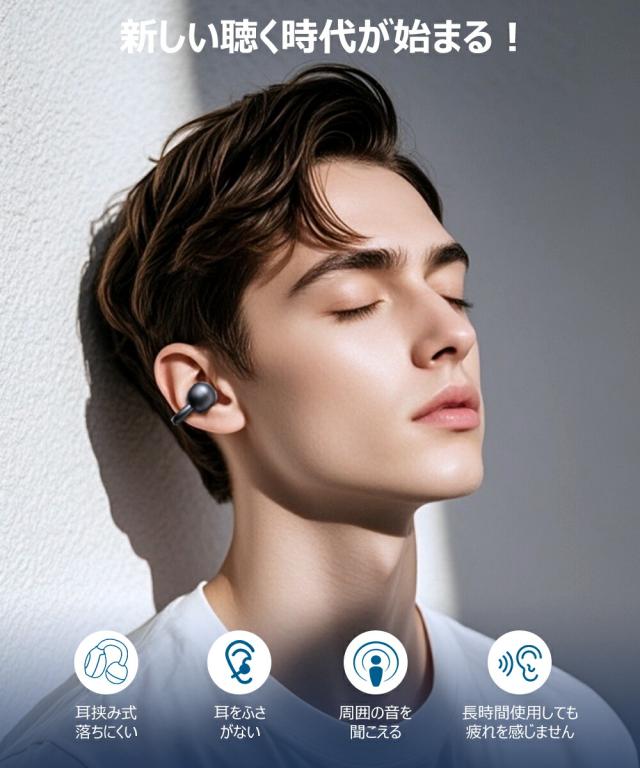 【2025革新イヤーカフ型 音質特化モデル 究極フィット感】ワイヤレスイヤホン Bluetooth5.4 耳挟み式 圧迫感ゼロ 骨伝導イヤホン 残量表示 通話ノイズキャンセル 瞬時接続 40H連続再生 自動ペア Type-C充電 iOS/Android対応 小型/軽量