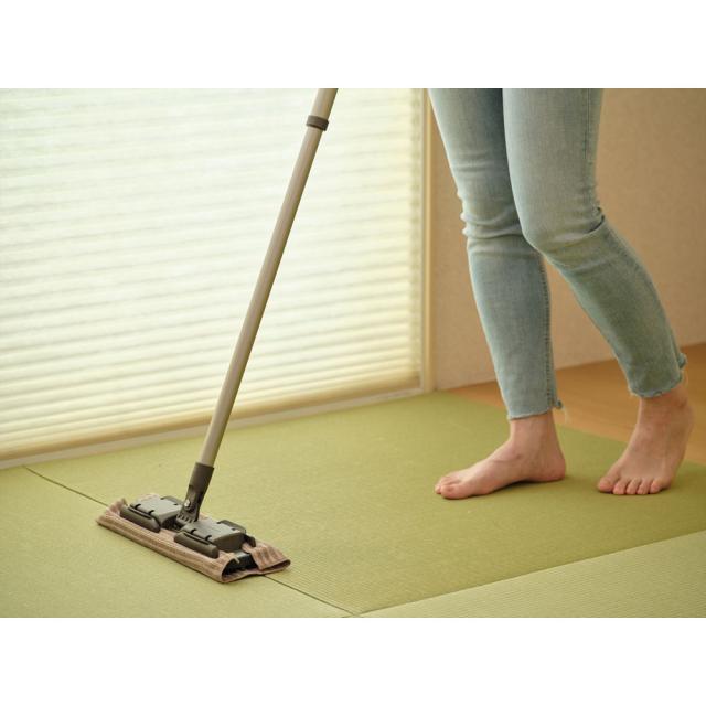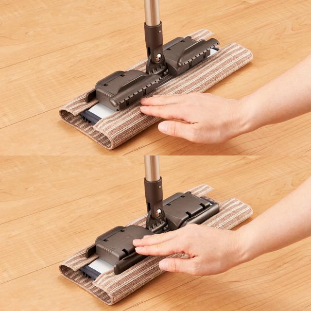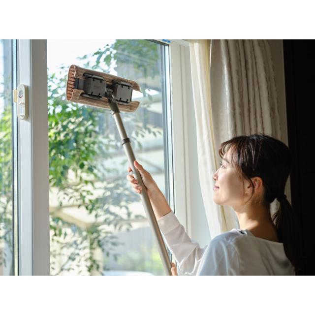 床の拭き掃除が立ったままできるのは本当にラク!さらにハンドル(柄)部分が80cm〜最大135cmまで伸縮するから、壁や窓などの高いところもお掃除できます。◎壁などの側面だけでなく、床と壁が接する部分に使用されている巾木の上など、ホコリが溜まりやすい場所も簡単に掃除ができます。