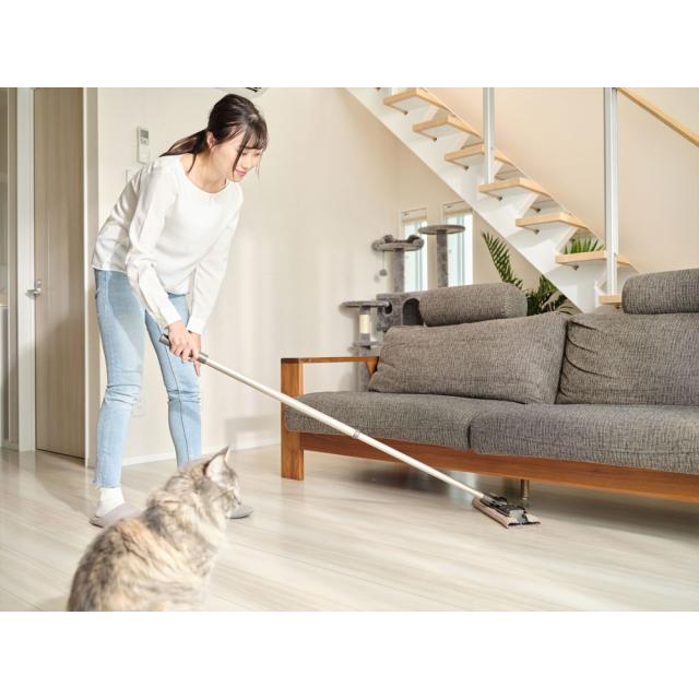 掃除機をかけた後のフローリングの床。きれいに見えても、皮脂やホコリなど取り切れてない汚れがこびりついていることも。汚れをしっかり取るには水拭きが適していますが、ゴシゴシ擦っても取れない場合も…。そこでおすすめなのが『タフモッピー ブラッシュ』。立ったまま「水拭き」「乾拭き」の両方ができるモップで、電気を使わないのに、なんと油でベタついた床がスッキリきれいに。その実力から、シリーズ累計約25万本※1の売上を誇る掃除道具のスーパーロングセラーです。※1:2014年11月〜2025年5月 シリーズ累計出荷数 メーカー調べ。