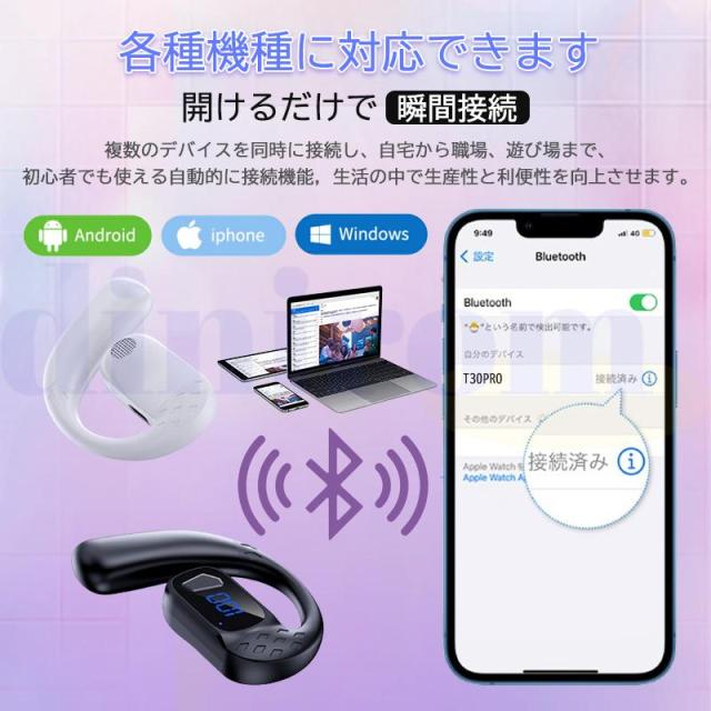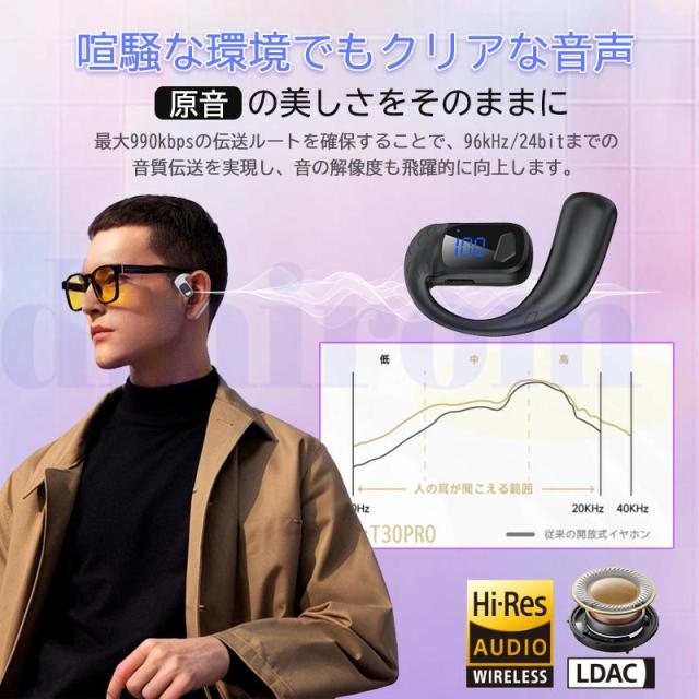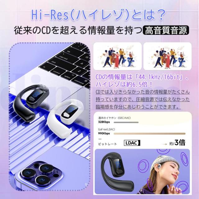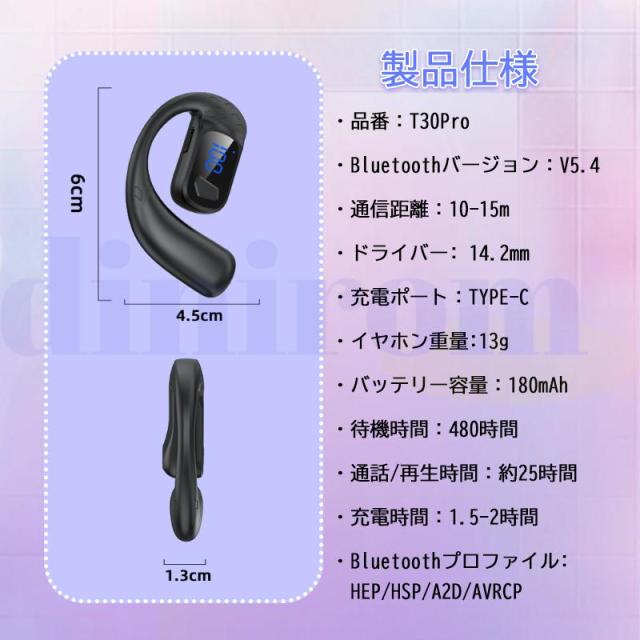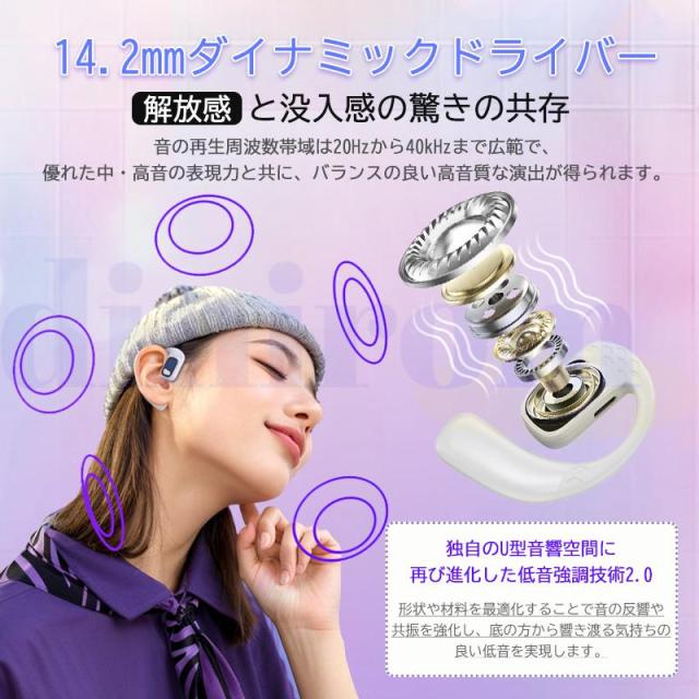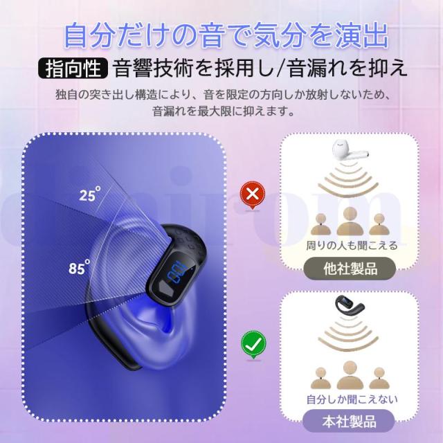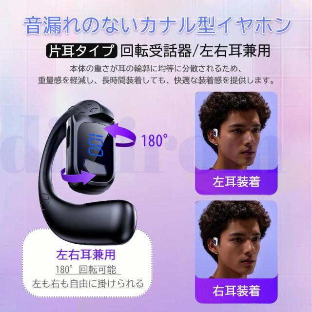 ワイヤレスイヤホン 空気伝導 Bluetooth5.4 片耳掛け 180°回転 左右兼用 超軽量 type-c充電 マイク付き 耳を塞がない Hi-Fi高音質 iPhone Android適用