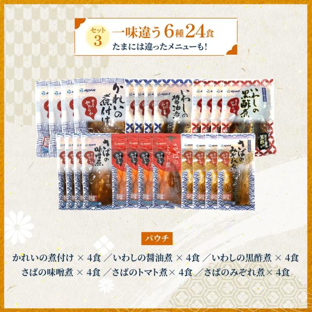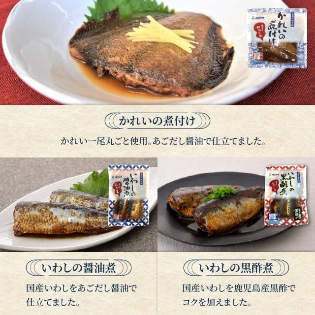 YSフーズ やわらか 骨まで食べられる あごだし 仕立ての 脂がのってふっくら 美味しい サバ イワシ カレイ 3種類の セット から 選べる 煮魚 焼き魚 お惣菜 詰め合わせセット