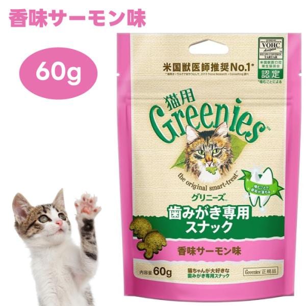 Greenies 猫用グリニーズ 香味サーモン味 60g キャットフード 猫 おやつ スナック オーラルケア 歯磨き 歯垢 歯石