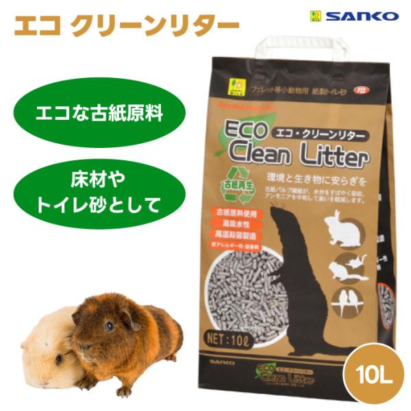 三晃商会 SANKO P22 エコ クリーンリター10L フェレット うさぎ 小動物 猫 猫砂 トイレ砂 小動物 床材 リサイクル素材 再生紙 新聞紙