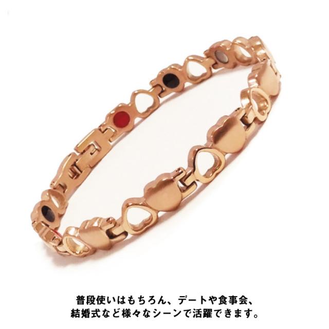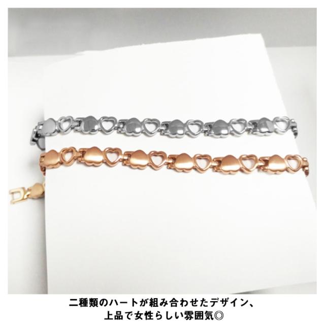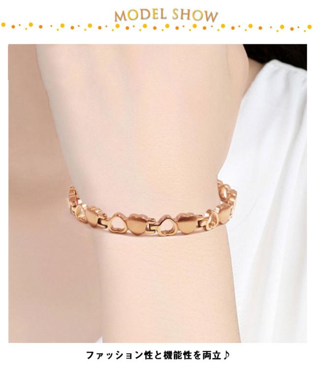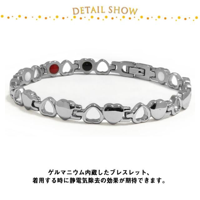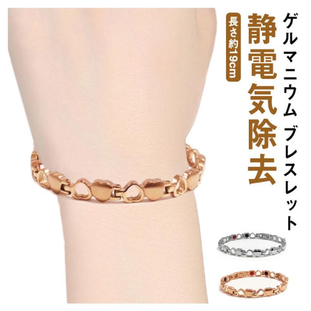 ゲルマニウム ブレスレット レディース 静電気除去 ブレスレット 静電気防止 ステンレス製 ハート形 おしゃれ 送料無料 金属アレルギーフリー 静電気軽減 アクセサリー 血行促進 肩こり軽減 ピンクゴールド シルバー