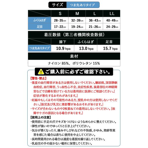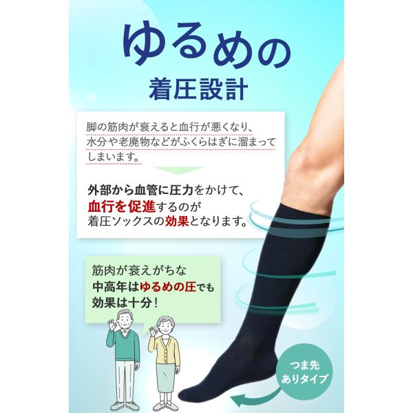 スポーツ後のむくみ対策に。軽い運動中や運動後に。立ち仕事・デスクワークに。夜間頻尿の対策に。血行促進、筋力サポート、むくみ解消。足首から上へいくほど着圧値が低くなる「段階圧力設計」を採用。抹消から中枢に向かい段階的に圧力を軽減して、静脈血やリンパ液のうっ滞を軽減し静脈還流を促進することで、脚のむくみを軽減します。【様々なシチュエーションでご利用いただけます】着圧 ソックス 医療用 弾性 ストッキング レギンス タイツ 男性用 女性用 男女兼用 ユニセックス メンズ レディース つま先あり ふくらはぎ ケア サポーター 下肢静脈瘤 肉離れ 血栓 予防 浮腫 オールシーズン 春 夏 秋 冬 夏用 コンプレッション カーフ スリーブ 加圧 弱圧 きつくない やさしい ゆるい 緩い ゆるめ 履きやすい 大きいサイズ 黒 ブラック おやすみ 寝るとき 就寝用 夜 夜用 日中 ウォーキング ジョギング ランニング 部活 サポーター 看護 ナース 立ち仕事 デスクワーク 在宅ワーク リモートワーク 仕事中 高齢者 シニア<関連キーワード>母の日 父の日 敬老の日 プレゼント ギフト 実用的 花以外 60代 70代 80代