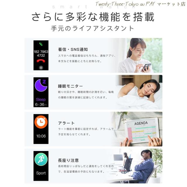 スマートブレスレット大画面 着信通知 睡眠検測 アラーム 時計 血圧 腕時計 彼女 彼氏