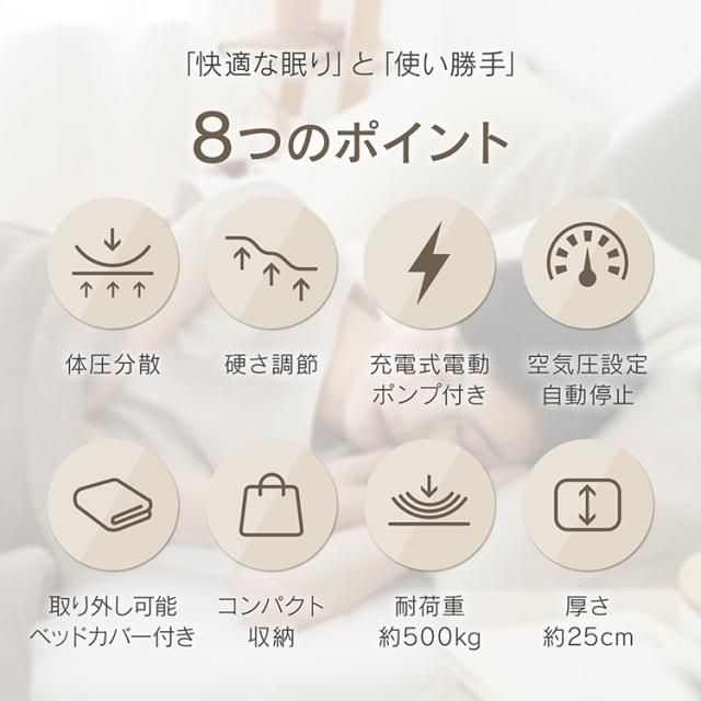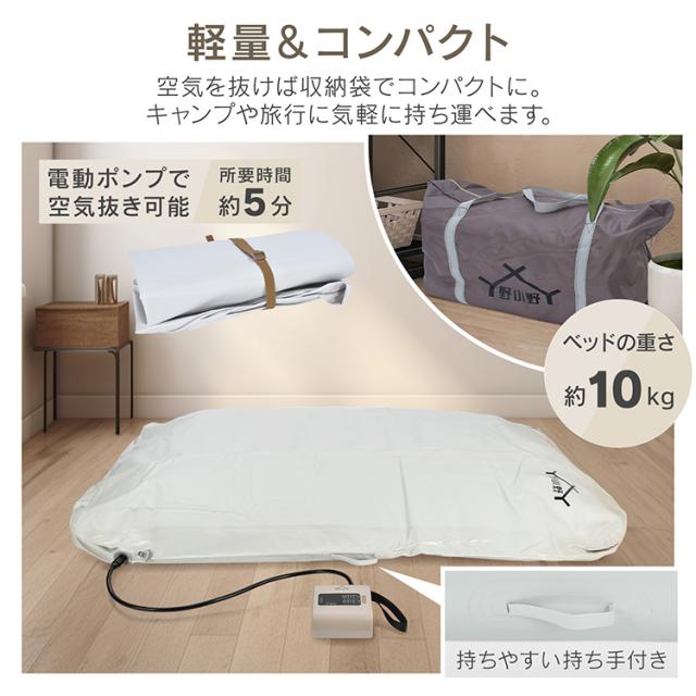 新生活 エアーベッド 電動ポンプ 電動 空気入れ 充電式 カバー付き ワイドダブル 体圧分散 硬さ調節 自動膨張 空気ベッド ベッド キャンプ アウトドア 普段使い 来客 簡易ベッド 災害 持ち運び 折りたたみ 寝具 in052