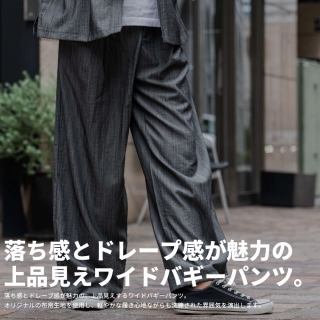 落ち感とドレープ感が魅力の、上品見えするワイドバギーパンツ。