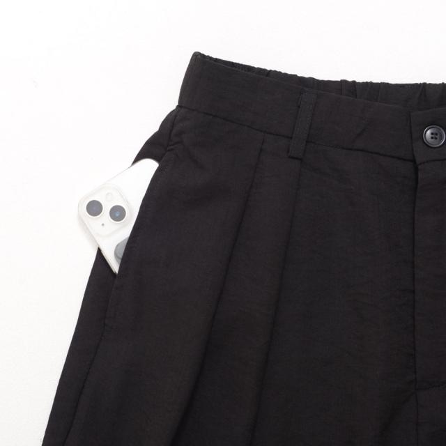 ウエストはゴム仕様でリラックス感のある着用感に加え、ツータック入りで立体感のあるシルエットに。