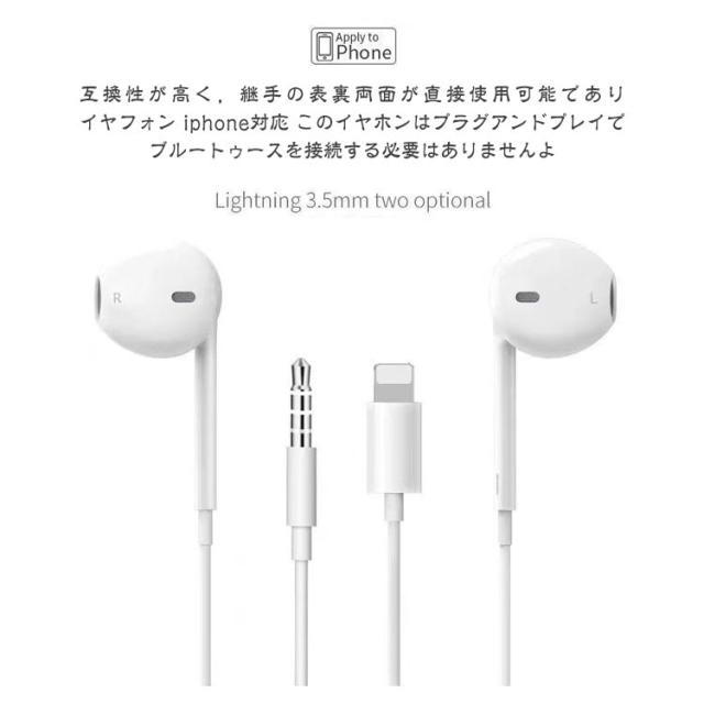 直接接続! iPhone アップル イヤホン 有線 Lightning Apple 有線イヤホン 純正 音量調節 マイク付き リモコン付き iPhone 12mini 12 12Pro 11P 11Pro 11ProMAX 7 7Plus 8 8Plus SE X XR XS MAX iPad iPod Bluetooth不要 送料無料