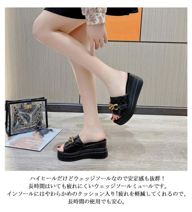 | 22.0~25.0cm ヒール12cm 涼しげなウエッジソールがおしゃれなサンダル。 ハイヒールだけどウェッジソールなので安定感も抜群! 長時間はいても疲れにくいウェッジソールミュールです。 インソールにはやわらかめのクッション入り!疲れを軽減してくれるので、長時間の使用でも安心。 滑りにくいアウトソールで安心して歩ける! 手を使わなくても、さっと履けるデザイン。忙しい朝も、これでお出かけ楽らく。脱いでもオシャレ! | |