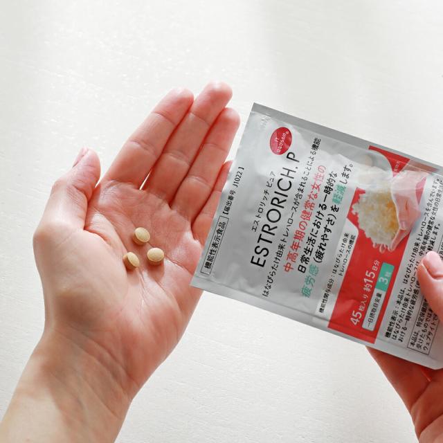 こんなお悩みに応えるのが、『エストロリッチ ピュア』です。 | 疲れやすさに「はなびらたけ」由来の支えるチカラ。