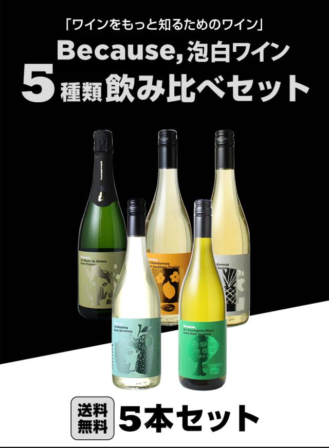 【送料無料】 産地・ブドウ品種の個性を知って楽しむ! Because シリーズ 5本 白ワイン スパーク 飲み比べセット ビコーズ フランス カリフォルニア ドイツ ニュージーランド 第1弾
