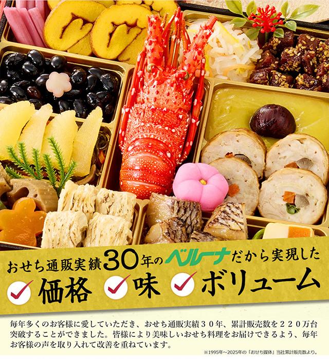 おせち 予約 2026 おせち料理 冷凍 4人前 5人前 ベルーナ 絆 和風 洋風 中華 三段重 全59種 和洋中 プレゼント付 12月29日お届け 【送料無料】