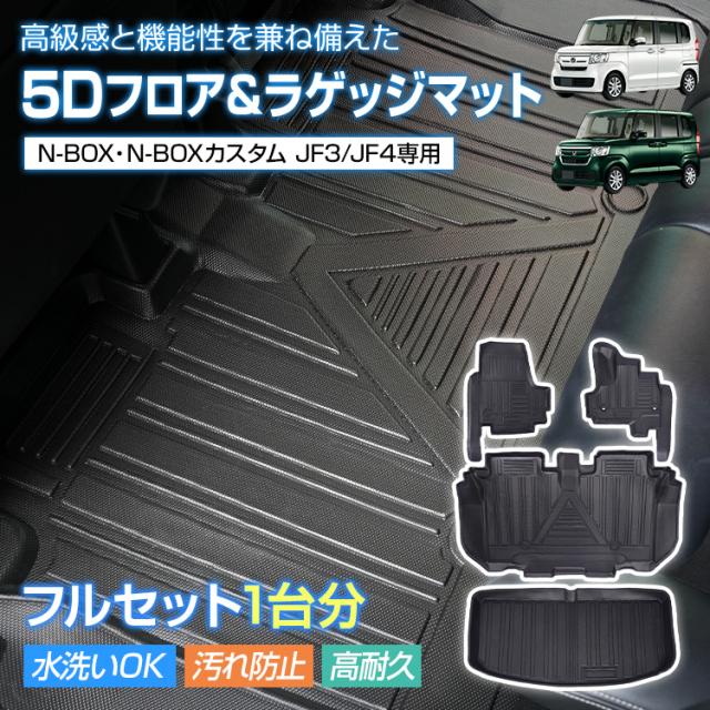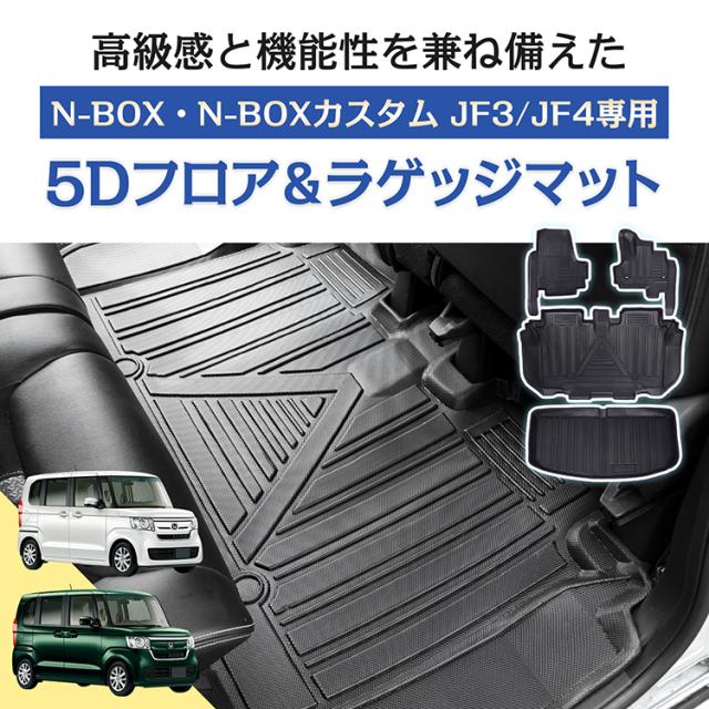 車用 フロアマット ラゲッジマット N-BOX カスタム JF3 JF4 専用 3D 5D フルセット ホンダ HONDA フロアーマット アクセサリー TPE素材 内装 カバー 運転席 助手席 2列目 ラゲッジ 水洗いOK 汚れ防止 高耐久 凹凸 高級感 tkee009